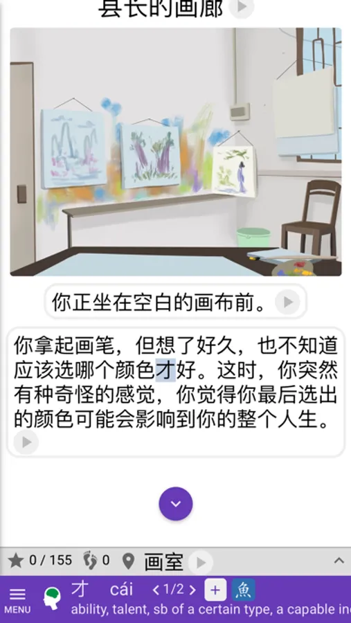 WordSwing's Chinese text adventure games and comics are targeted at intermediate learners of Mandarin Chinese. The games work a bit like an interactive graded reader whereby the course of the narrative changes depending on choices you make in the game.