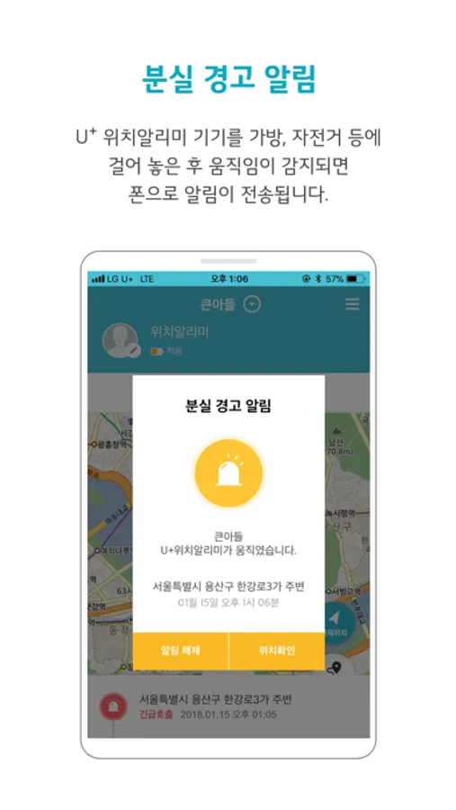 보호할 대상의 위치를 보호자 휴대폰에서 실시간으로 확인할 수 있습니다.
