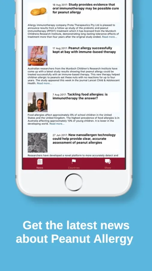 The app works OFFLINE !!! No need for the internet: that is crucial when you travel. On top of that, we designed a specialized news feed that helps to stay up to date about the Peanut Allergy discoveries around the world.
