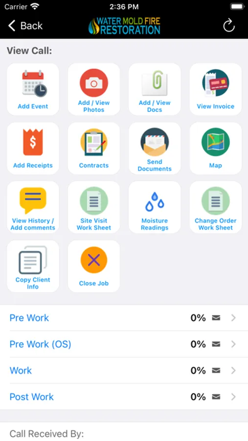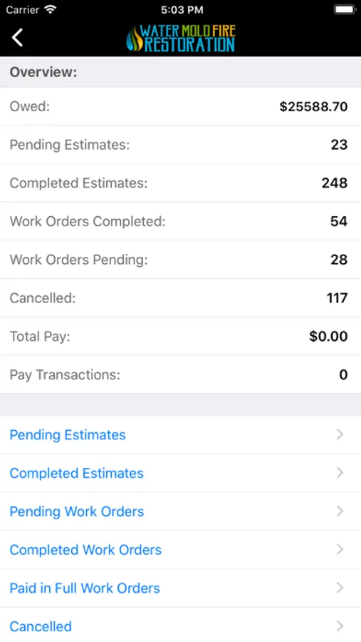 This app will be utilized by Water Mold Fire Restoration's field technicians. Our headquarters inputs appointments into our web portal and technicians login to the app to view customers information, create estimates for repairs, and track their payment from us.