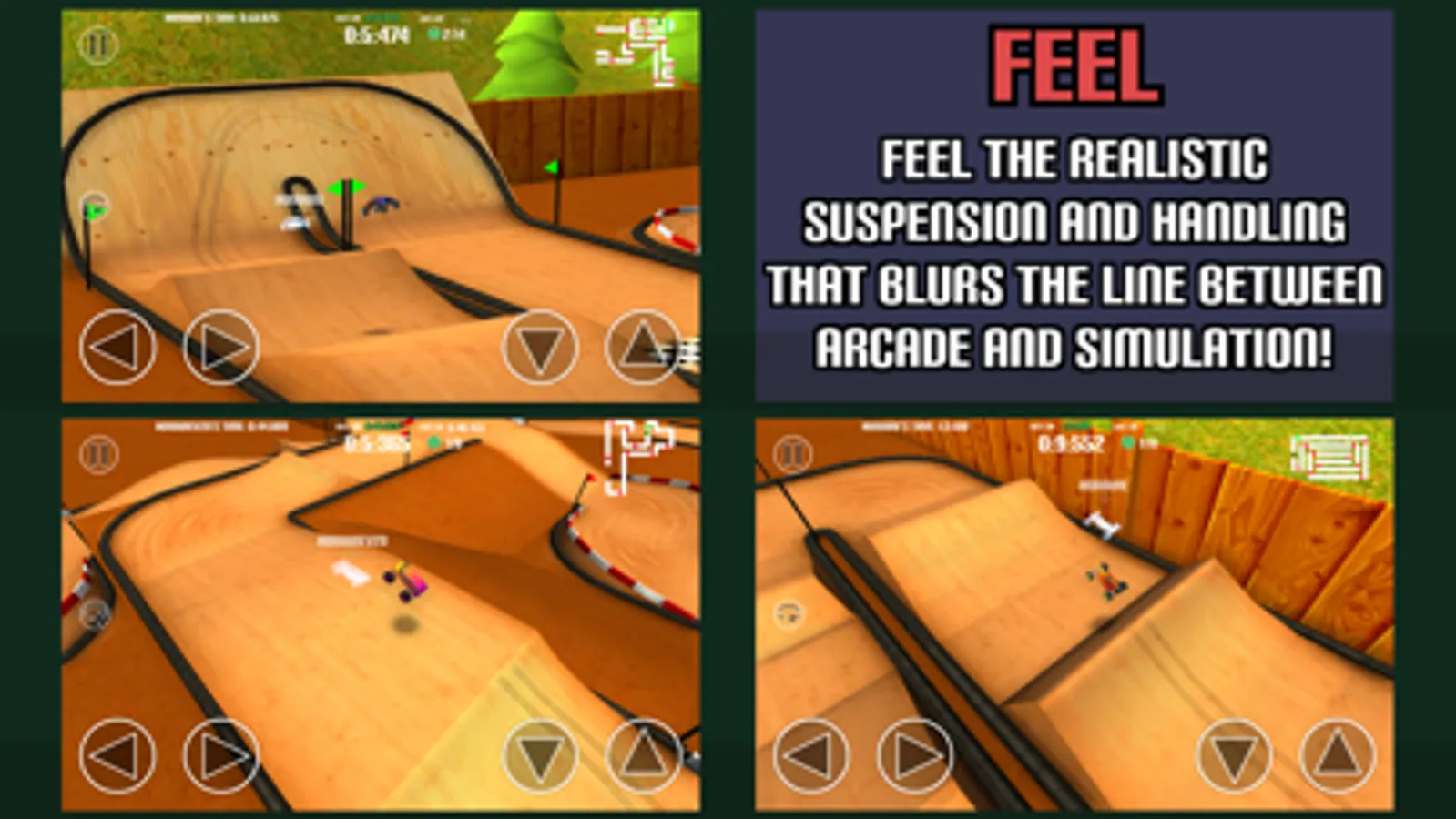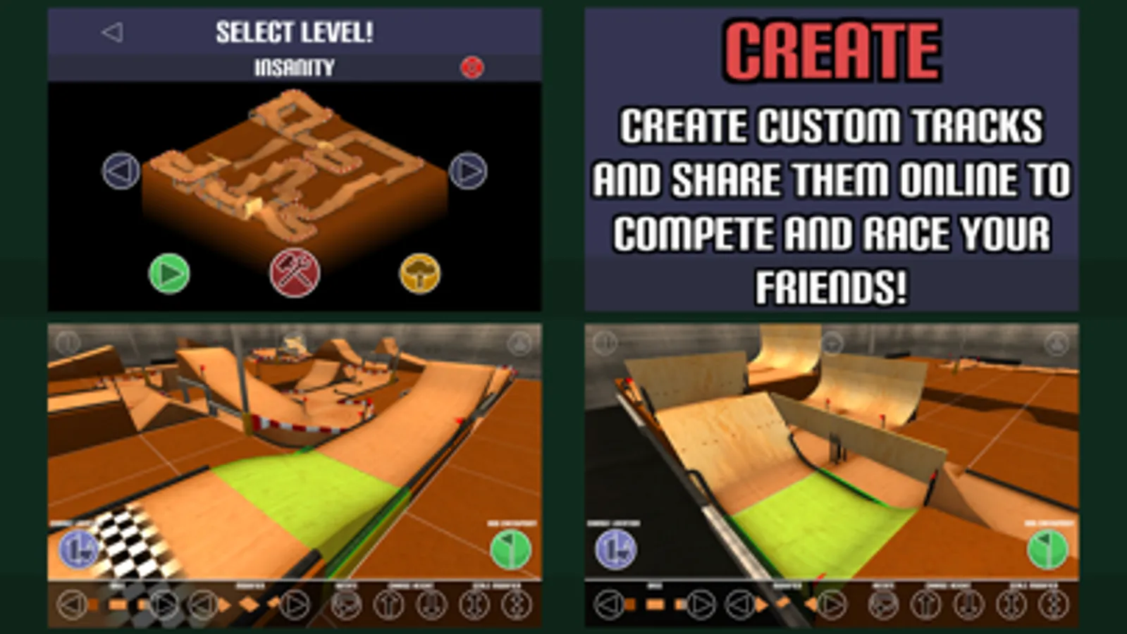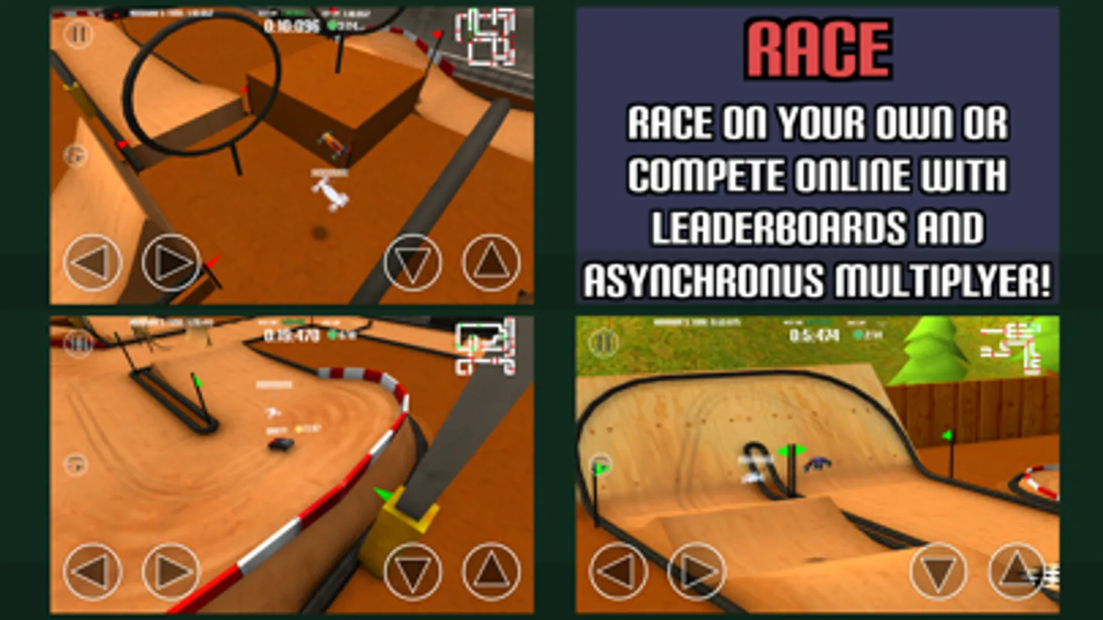 Customize your vehicle, Create your very own race tracks, Share them online and Race your friends with asynchronous multiplayer and global leaderboards!