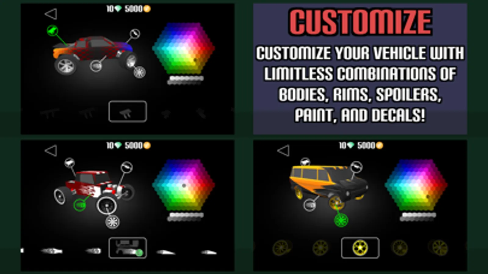 Limitless vehicle customization with tons of bodies, rims, spoilers, decals and colors!
