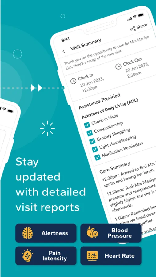 - Detailed Care Reports: Receive a visit summary after every visit so you are updated with the care your loved ones have received