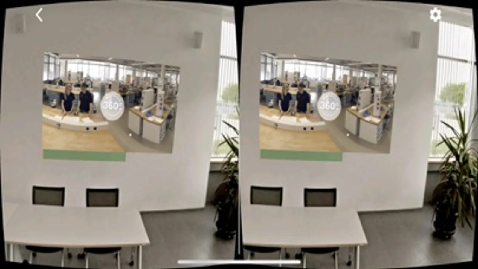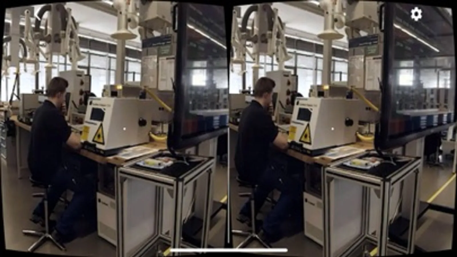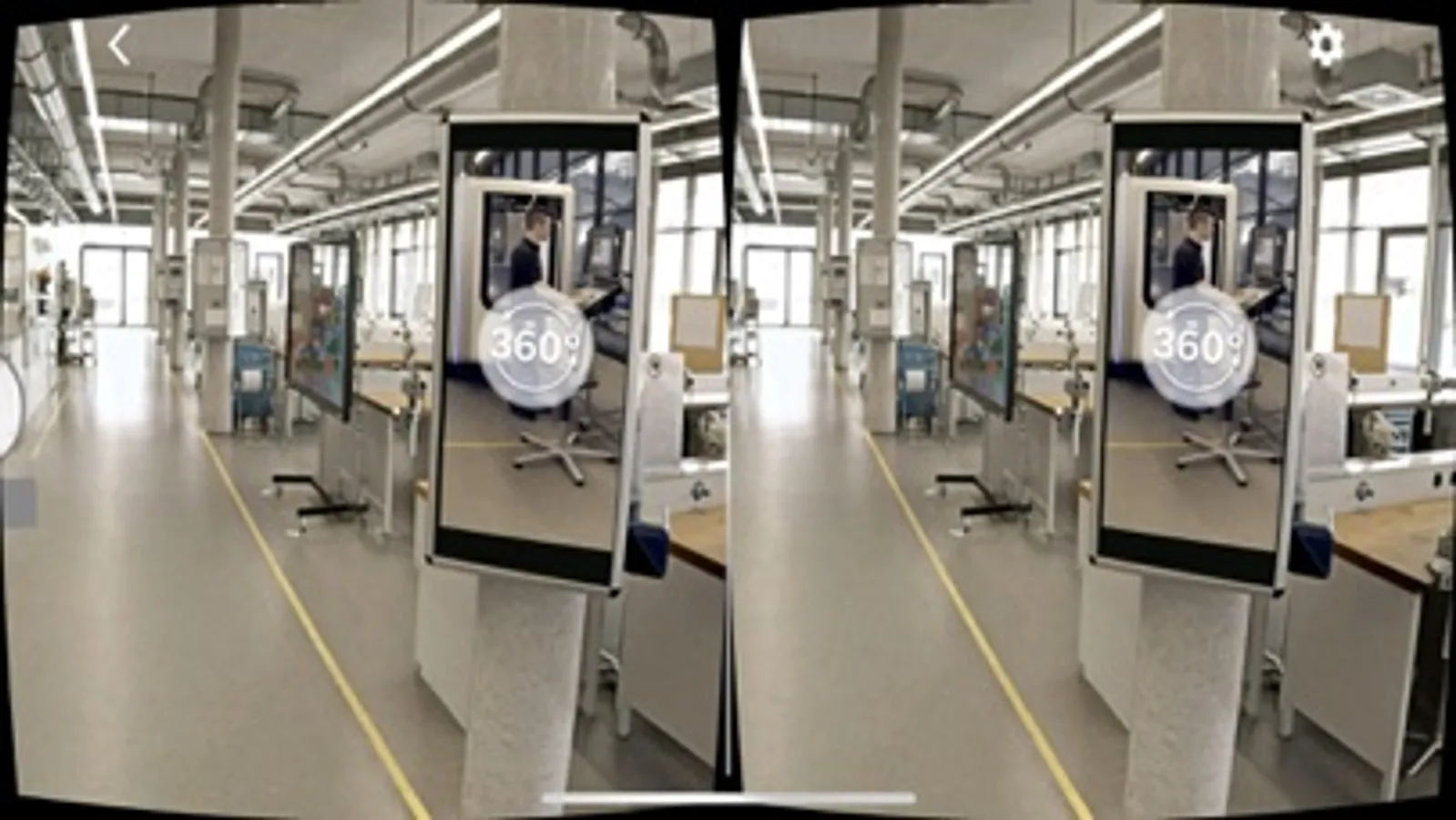 Um zu starten, müssen Sie das Smartphone einfach in eine VR-Halterung (Cardboard) legen. Anschließend betreten Sie eine virtuelle Ausbildungswelt. Der weiße Punkt in der Mitte des Bildschirms dient als Cursor. Sobald man ihn auf eine Aktionsfläche (zum Beispiel Tür zum nächsten Raum) hält, füllt sich der Balken. Ist er vollständig geladen, löst man die Aktion aus (z.B. Raum betreten). Vom Foyer aus, wo man sich zwei 2D-Filme ansehen kann, gelangt man in vier weitere Räume. Hier kann man sich das spezifische Berufs-Umfeld in 360-Grad-Sicht anschauen. Außerdem haben Sie hier die Möglichkeit, vier 360-Grad-Filme zu insgesamt vier Ausbildungsberufen zu erleben. Um die Filmsequenzen zu verlassen oder in das Foyer zurückzukehren, müssen Sie einfach den Blick nach unten richten, bis eine Schaltfläche „Zurück“ erscheint.