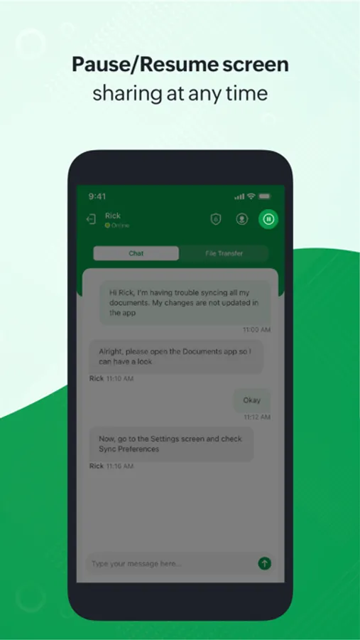 5) Although you'll be sharing your screen directly with the technician, you're always in control as you can choose to stop/resume screen sharing at anytime.