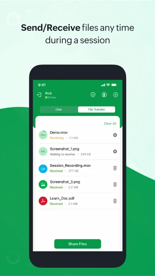 6)During an ongoing remote support session, technicians and customers can send or receive files of up to 2GB using the File Transfer option.