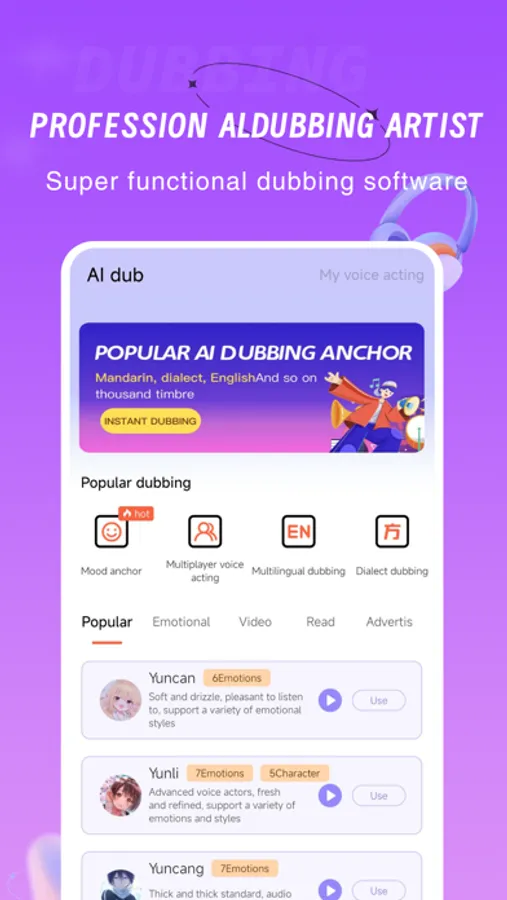 Dubbing, is a professional text-to-speech dubbing synthesis software, supporting AI dubbing, emotional anchor dubbing, multi-language dubbing and dialect dubbing, using powerful voice synthesis technology, high-end dubbing anchors, to create a simple and efficient dubbing service platform.