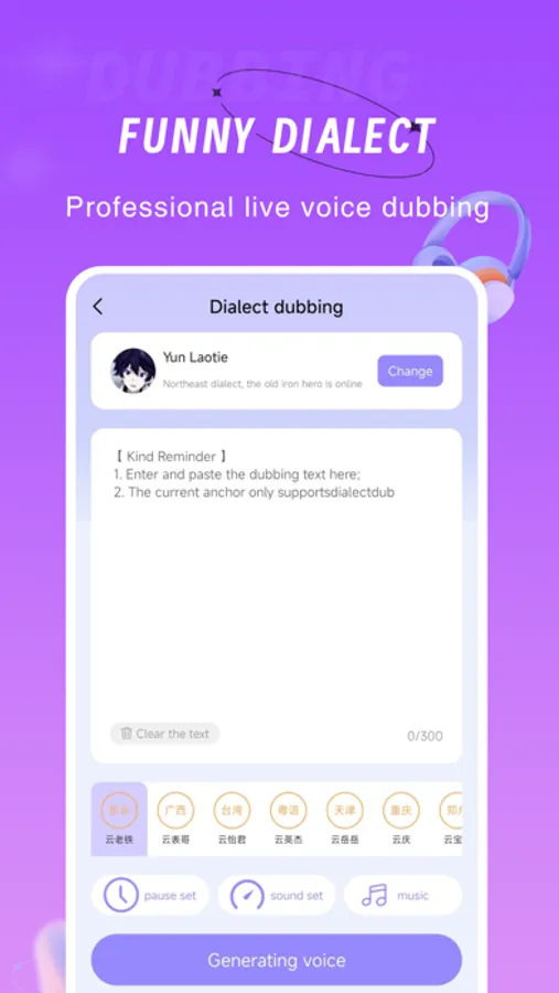 1. intelligent dubbing: a variety of popular dubbing anchors for you to choose, Mandarin, dialect, English, Japanese, Korean and so on thousands of sound colors, input text, choose dubbing anchors, add background music, one click synthesis of their own desired dubbing, simple and efficient.