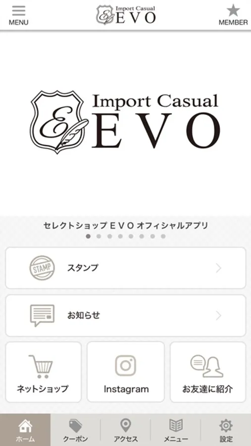 海外ブランドを中心に、EVOオリジナルアイテムなど幅広く取り揃えています。