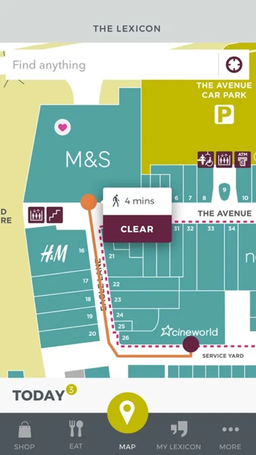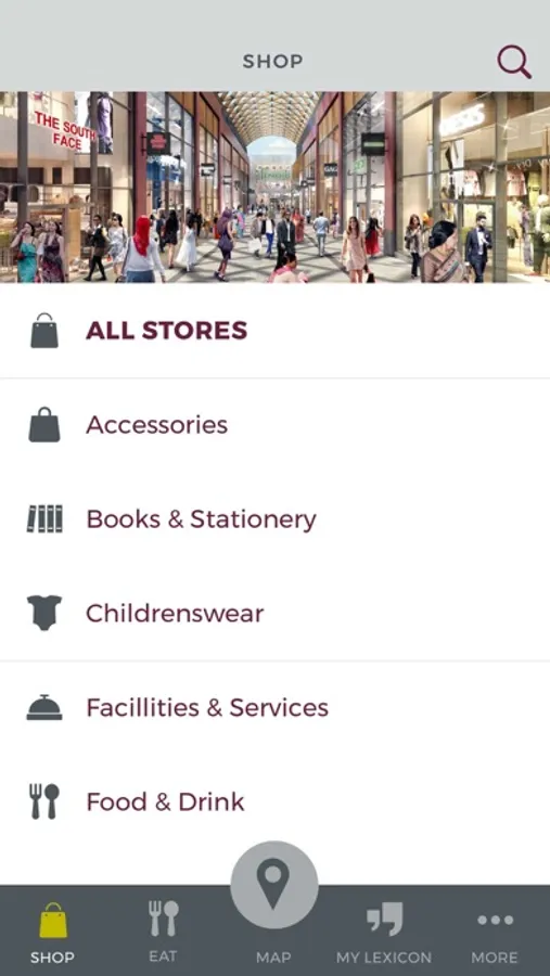 • Shop and Eat - Search for stores or restaurants by category, find it's location and opening times and save for future visits!