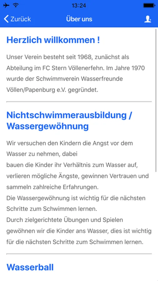 Holen Sie sich unsere offizielle Wasserfreunde Völlen/Papenburg App! Hier bekommen Sie alle News, Termin, Bilder und Infos direkt auf Ihr Smartphone. Mit unserer App erreichen wir Sie auch unterwegs und Sie verpassen nie mehr wichtige Updates von uns. Kursangebot und die Kurszeiten in der App. Mit einem Terminkalender seid Ihr immer up to date, wenn es um die Veranstaltungen der Wasserfreunde geht.Einfach kostenlos runterladen und los geht’s!