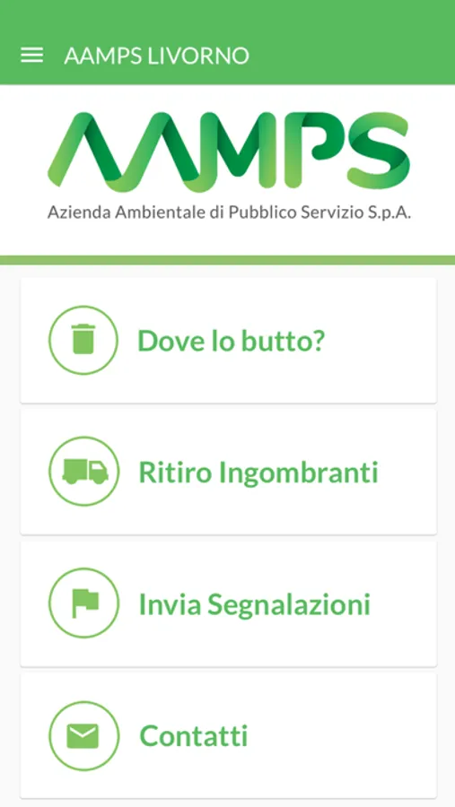 AAMPS Livorno fornisce una guida per il corretto conferimento dei rifiuti urbani, inoltre consente di richiedere il ritiro di rifiuti ingombranti, sfalci e potature. E' possibile anche segnalare situazioni anomale (come ad esempio: discariche abusive, cestini pieni etc...) e di conoscere l'ubicazione delle piattaforme ecologiche.