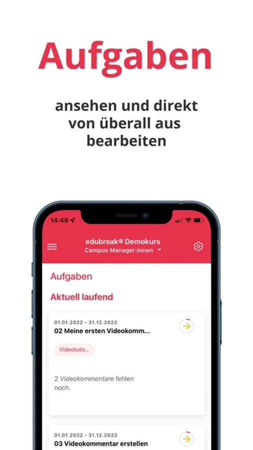 Mit der edubreak®APP können alle Nutzer eines edubreak®CAMPUS ihre Videos nun direkt mit ihren Smartphones oder Tablets aufnehmen und in den jeweiligen Kurs ihres edubreak®CAMPUS einstellen.