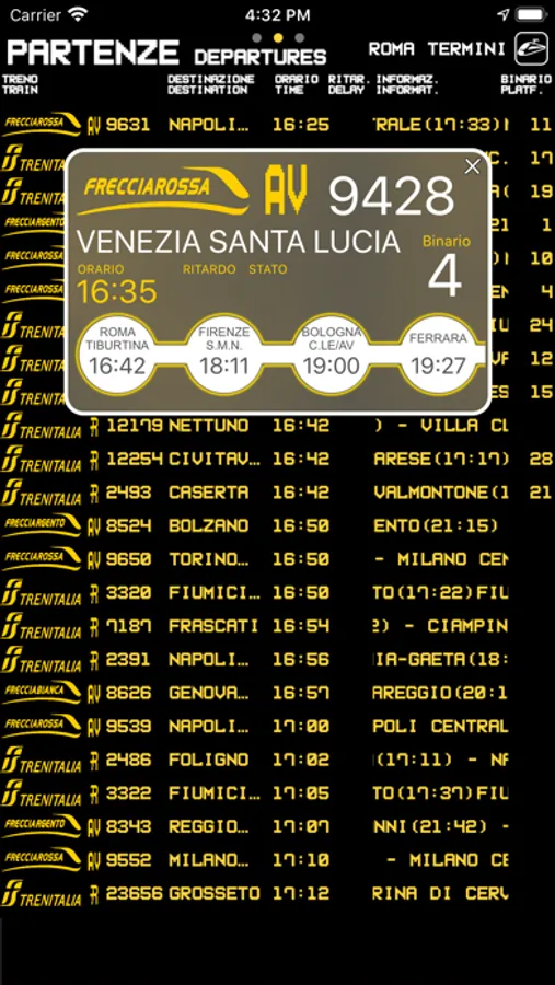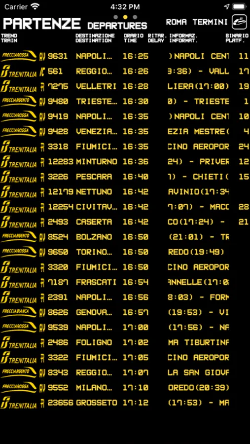 I dati riportati sul tabellone virtuale nel tuo iPhone sono quelli ufficiali, forniti dai servizi pubblici delle ferrovie.