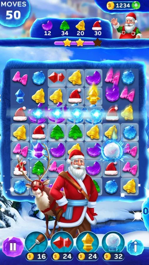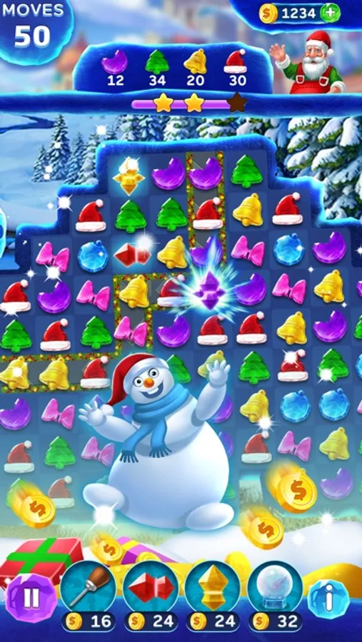 Christmas Frozen Swap is a funny match 3 Puzzle game with 1200 challenging levels, and just in time for the holidays. You will experience the adventure with Christmas Frozen Swap in a snow world of Christmas trees, Santa's hats, Christmas bells and other cute Christmas Pieces.