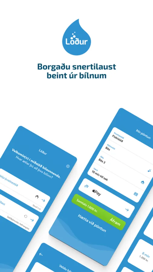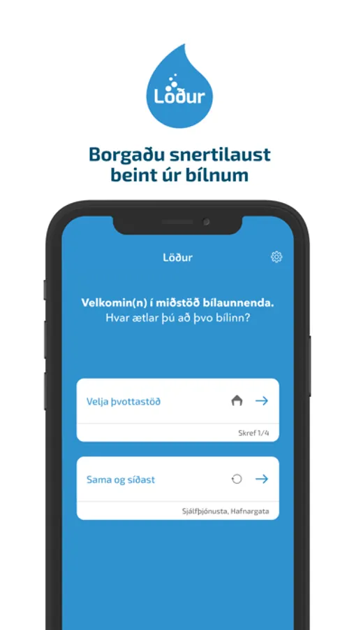 Löður appið auðveldar þér að kaupa þvott á öllum Löðurstöðvum landsins, hvort sem um er að ræða snertilausan þvott eða ef þú vilt þvo sjálf/ur í bás. Þú þarft ekki lengur að fara frá bílnum til að kaupa þér þvottartíma, þú getur gert það sitjandi inni í hlýjum bílnum þínum.
