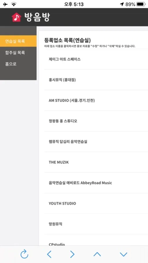 ▶ 위치정보 서비스를 이용해서 지금 계신 장소의 주변 연습실, 합주실들을 보여드립니다.