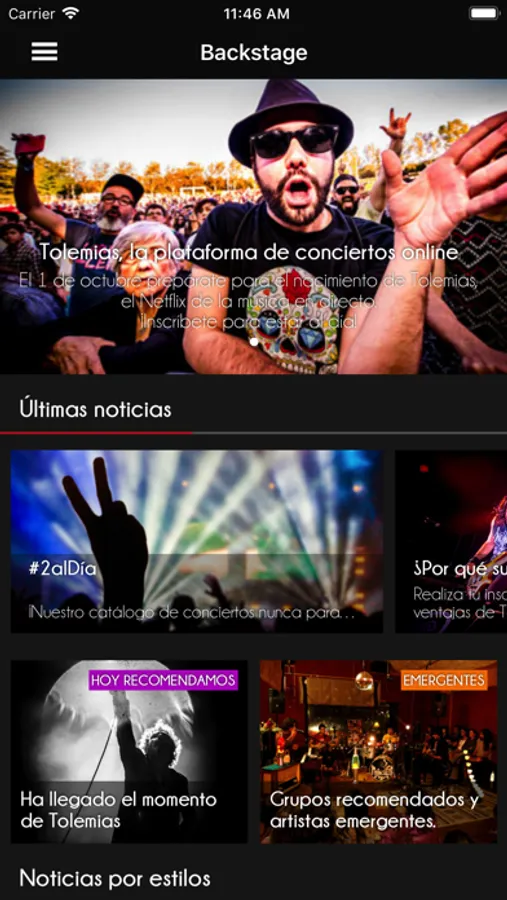 Bienvenidos a Tolemias, el gran Festival digital, el lugar donde puedes encontrar varios escenarios llenos de talento. Música de todos los estilos; para todas las edades...pero siempre con una característica fundamental en común: Tolemias sólo tiene música en directo, auténtica, sincera y pura. Música de verdad.