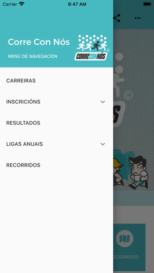 Con la app del "Corre Con Nós" podrás inscribirte, consultar los recorridos de las pruebas, tus resultados, y toda la información de los eventos y del circuito.