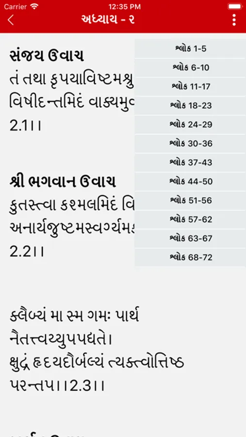 Hindi & Gujarati section of app has all the 700 verses-shlokas.