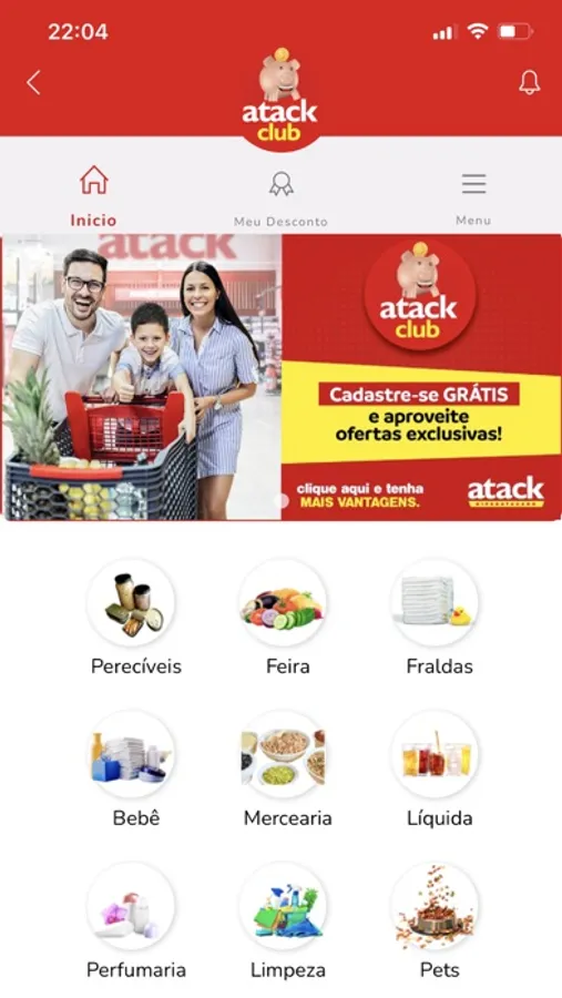 Aplicativo de vantagens exclusivas ao clube Atack