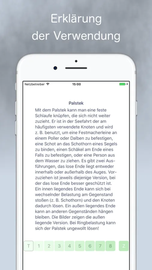 In kleinen, detaillierten Schritten wird gezeigt, wie man die Knoten knüpft. Oder man lässt eine Animation laufen. Zusätzlich werden die Verwendungsmöglichkeiten der einzelnen Knoten besprochen, sowie Vor- und Nachteile der verschiedenen Varianten erläutert.