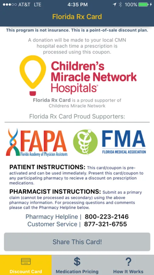 Florida Rx Card is a proud supporter of Children's Miracle Network. A donation will be made to your local CMN hospital each time a prescription is processed using this coupon program. Florida Rx Card is also partnered with local organizations like Florida Academy of Physician Assistants and the Florida Medical Association.