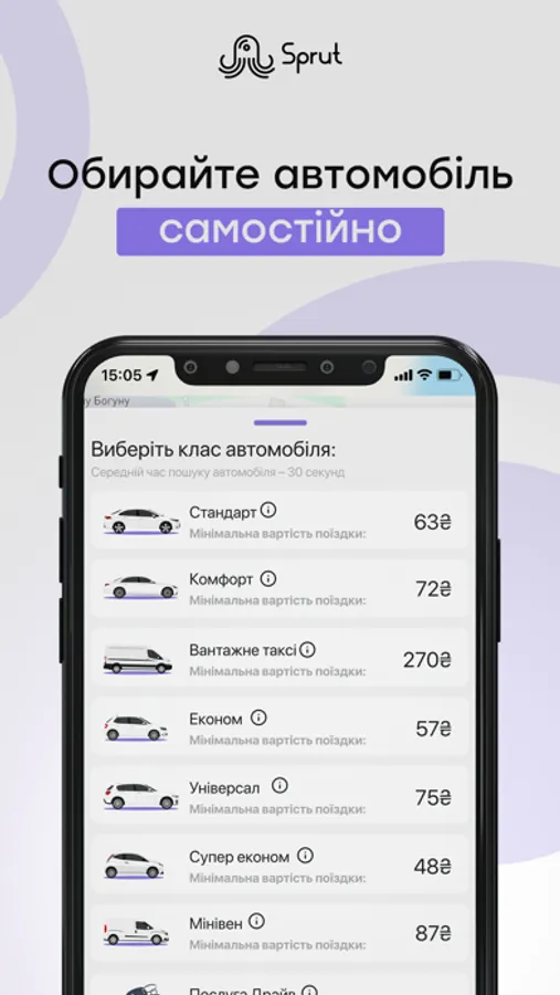 When ordering, you can choose a car class: from "super economy" to "comfort";