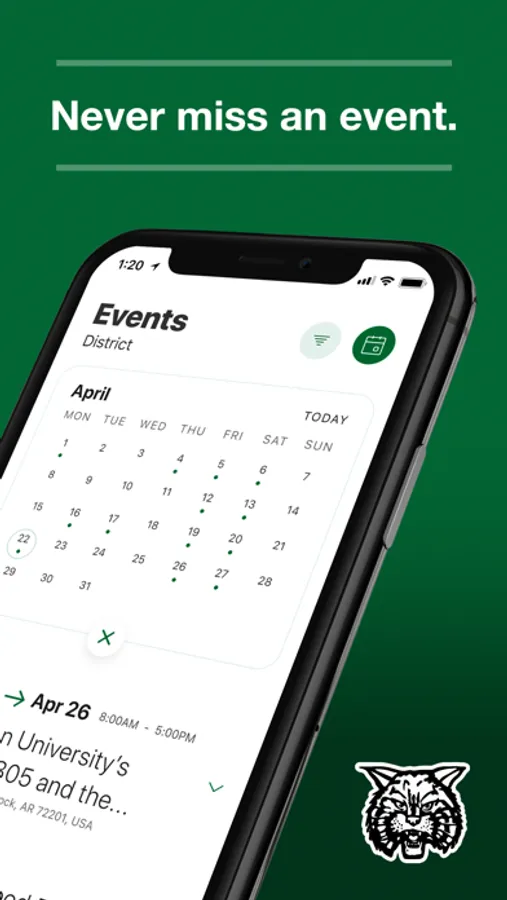 The event section shows a list of events throughout the district. Users can add an event to their calendar to share the event with friends and family with one tap.