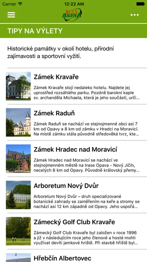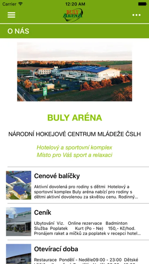 Mobilní aplikace Buly Aréna Vám poskytne potřebné informace o službách hotelového a sportovního komplexu. Naleznete v ní informace o restauraci a jídelním lístku, hotelu a sportovním a relaxačním vyžití v areálu Buly Arény. Dále také tipy na výlety po okolí a důležité kontakty.