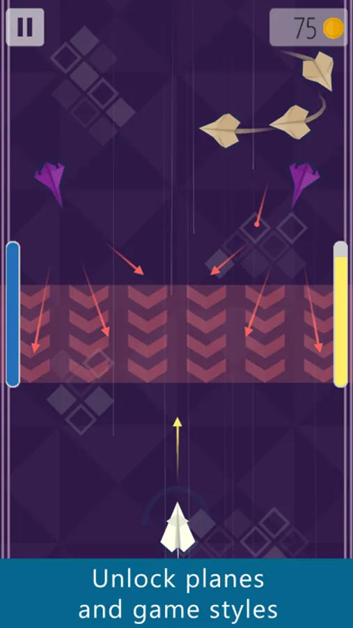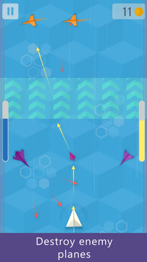 In Highwind you control a paper plane using only two buttons. You will destroy enemy planes and protect your own. Tapping the right side of the screen will shoot bullets and holding the left side will activate the shield. The shield blocks and reflects bullets back to your enemies.