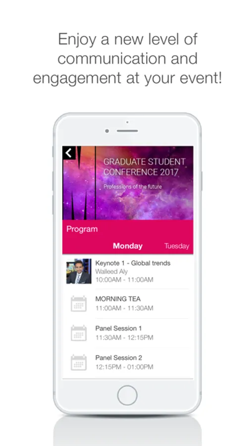 - Access event details including registration, programs, and venue details