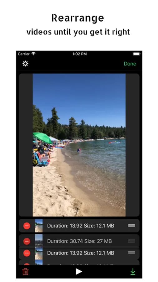 This app is great for creating stories especially if you have recorded multiple videos. Merge all your videos into a single video. Portrait and landscape videos can be combined together in the same video. After you have imported all your videos, you can also rearrange in any order you choose.
