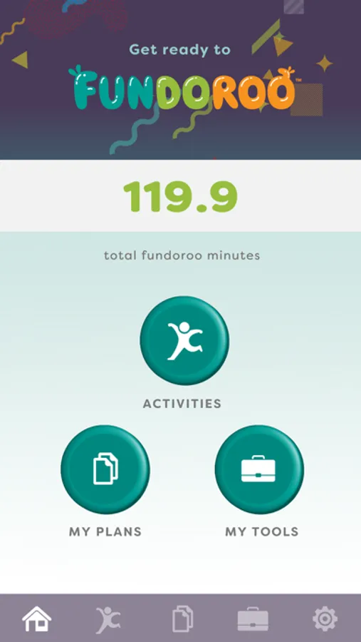 The FunDoRoo mobile app has three components: Activities, Daily Plans, and Tools.