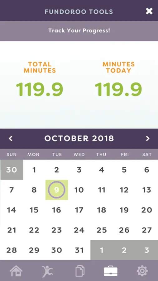 The Tools feature includes videos and tutorials as to how to use the mobile application, how to modify activities, how to create your own plan, safety measures to avoid injuries, and a tracking calendar. The content of FunDoRoo mobile application has been submitted for copyright for intellectual property.
