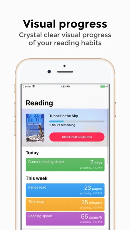 - Tracking daily reading streaks and record of your best streak