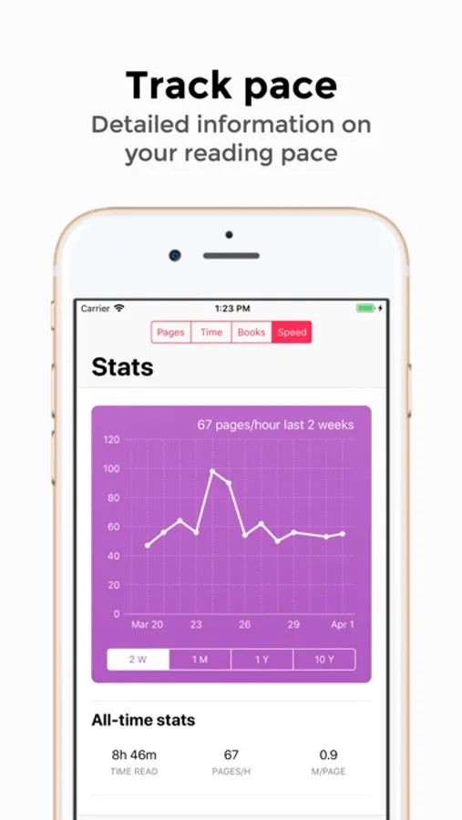 - Large graphs for pages read, books read and reading pace on weekly, monthly and yearly time scales