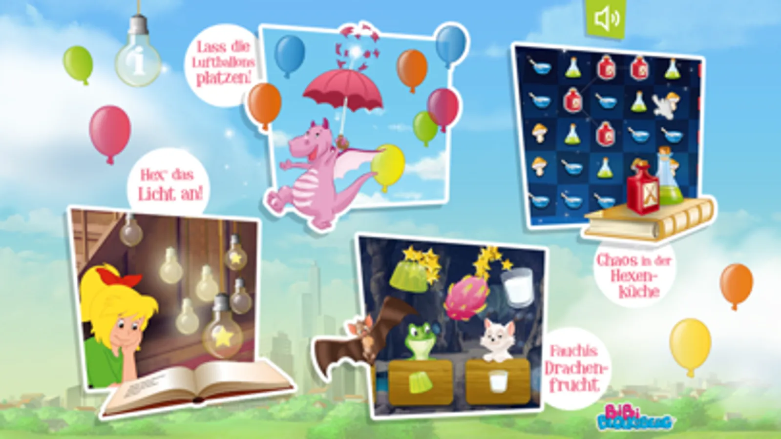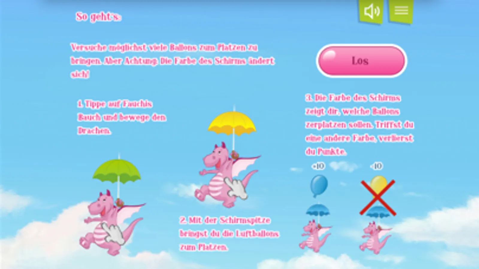 Bibis Lieblingsdrache, der kleine Fauchi, findet die bunten Luftballons am Himmel einfach drachenstark. DOCH noch schöner ist es, die Ballons zum Platzen zu bringen. Hilf ihm dabei! Die richtige Farbe entscheidet über Plus-und Minuspunkte.