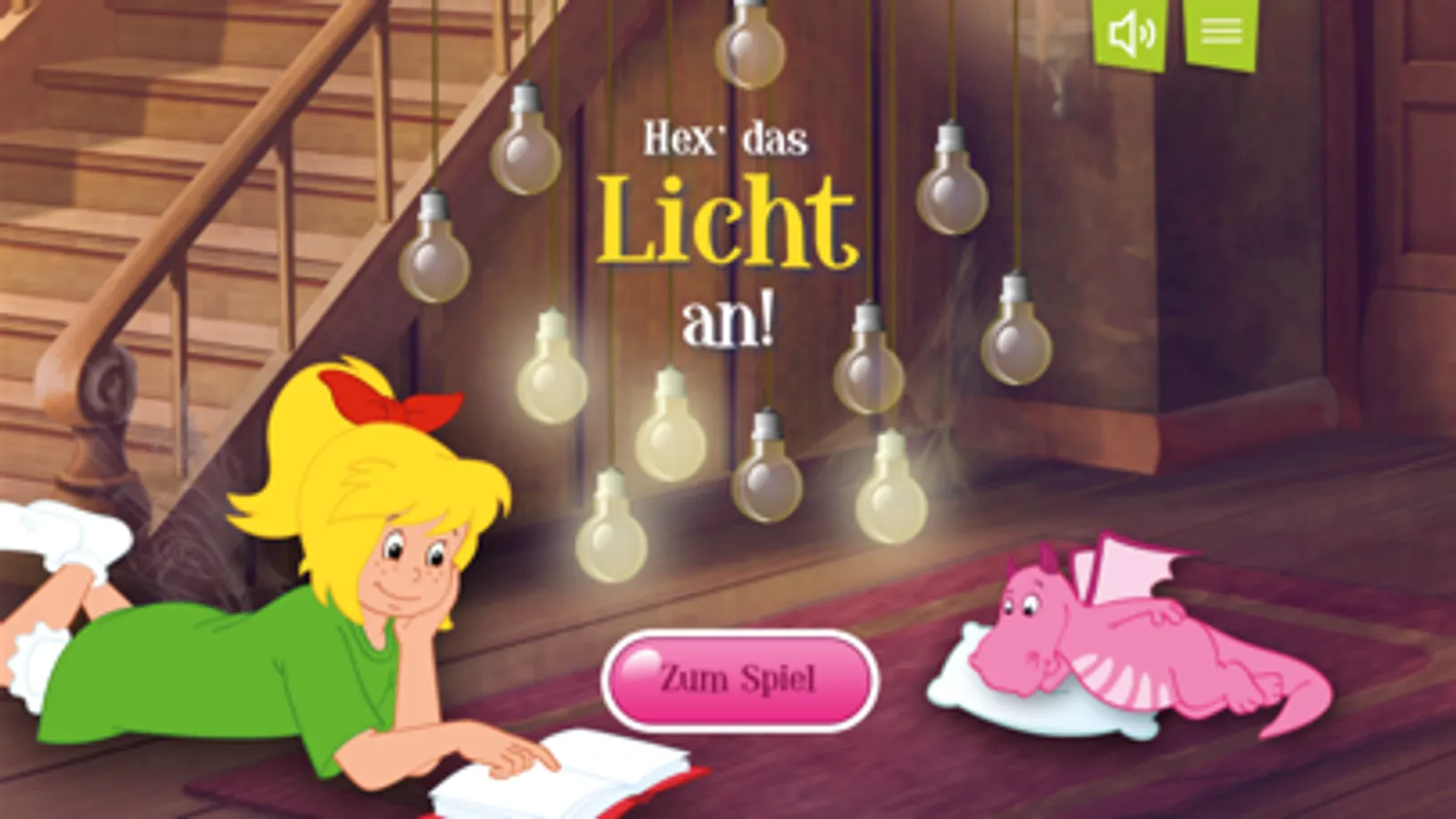 Bibi und Fauchi brauchen Licht zum Lesen. Draußen wird es dunkel. Sie können die Buchstaben kaum noch erkennen. Also zieh die Glühbirnen zum Buch und bring sie zum Leuchten. So bekommen die beiden genug Licht und du viele Punkte.