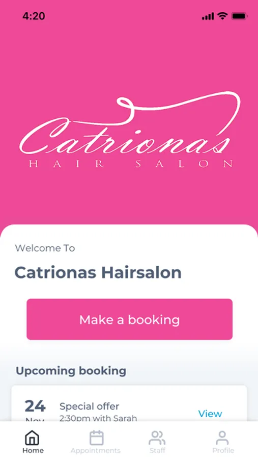 The Catrionas Hairsalon app makes booking your appointments and managing your loyalty points even easier. You're just a few taps away from feeling good and looking great!