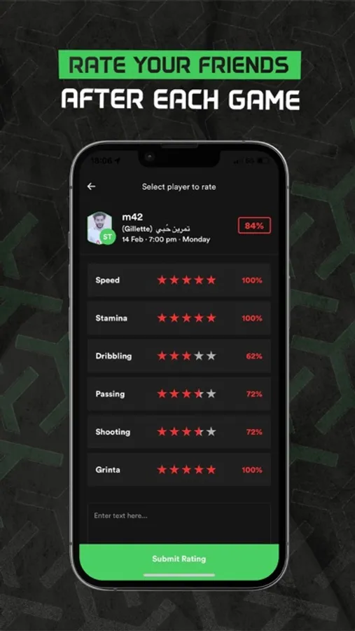 Create a game and invite your friends to play with you. The team is not complete? No issue, make a football group and invite your friends or players around you to join your game.