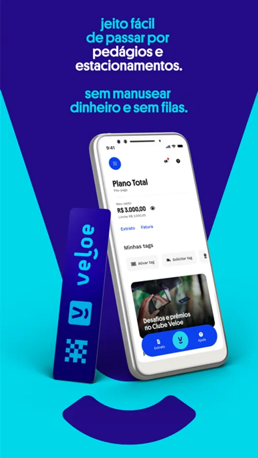 Complete missões no app e desbloqueie prêmios incríveis! Adquira sua tag Veloe, ative pelo app e clique em Clube Veloe para aceitar os termos e garantir recompensas como cashbacks, descontos e vouchers.