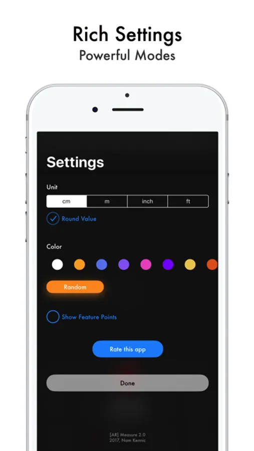 • Air Mode: Use your device as the anchor to quickly set the position, useful for measuring the distance of a room, or measuring the size of large objects.
