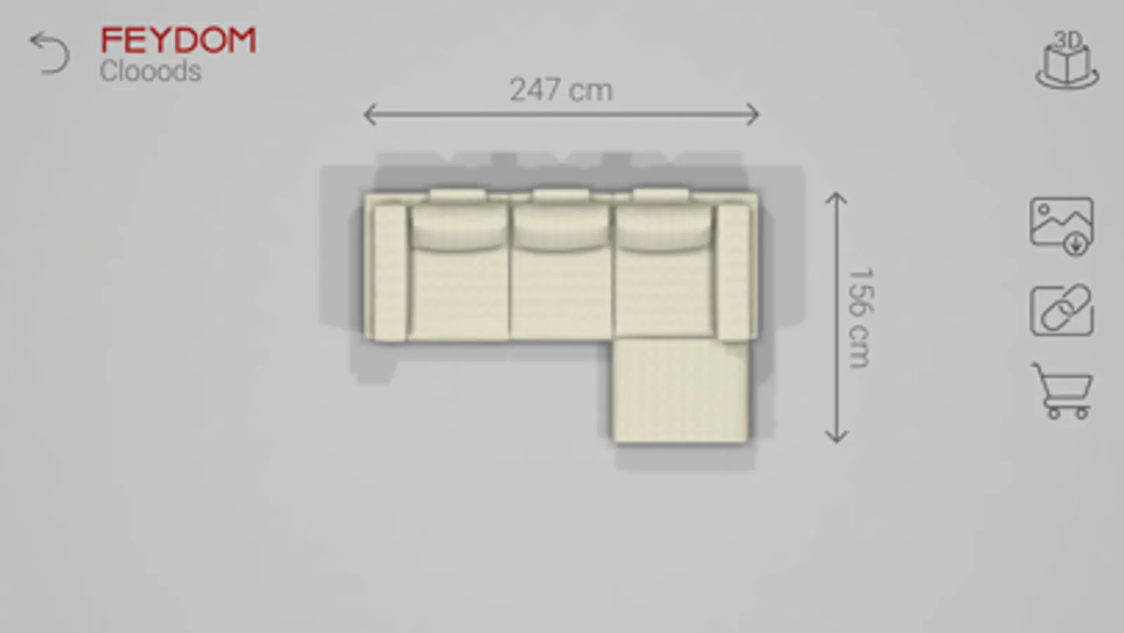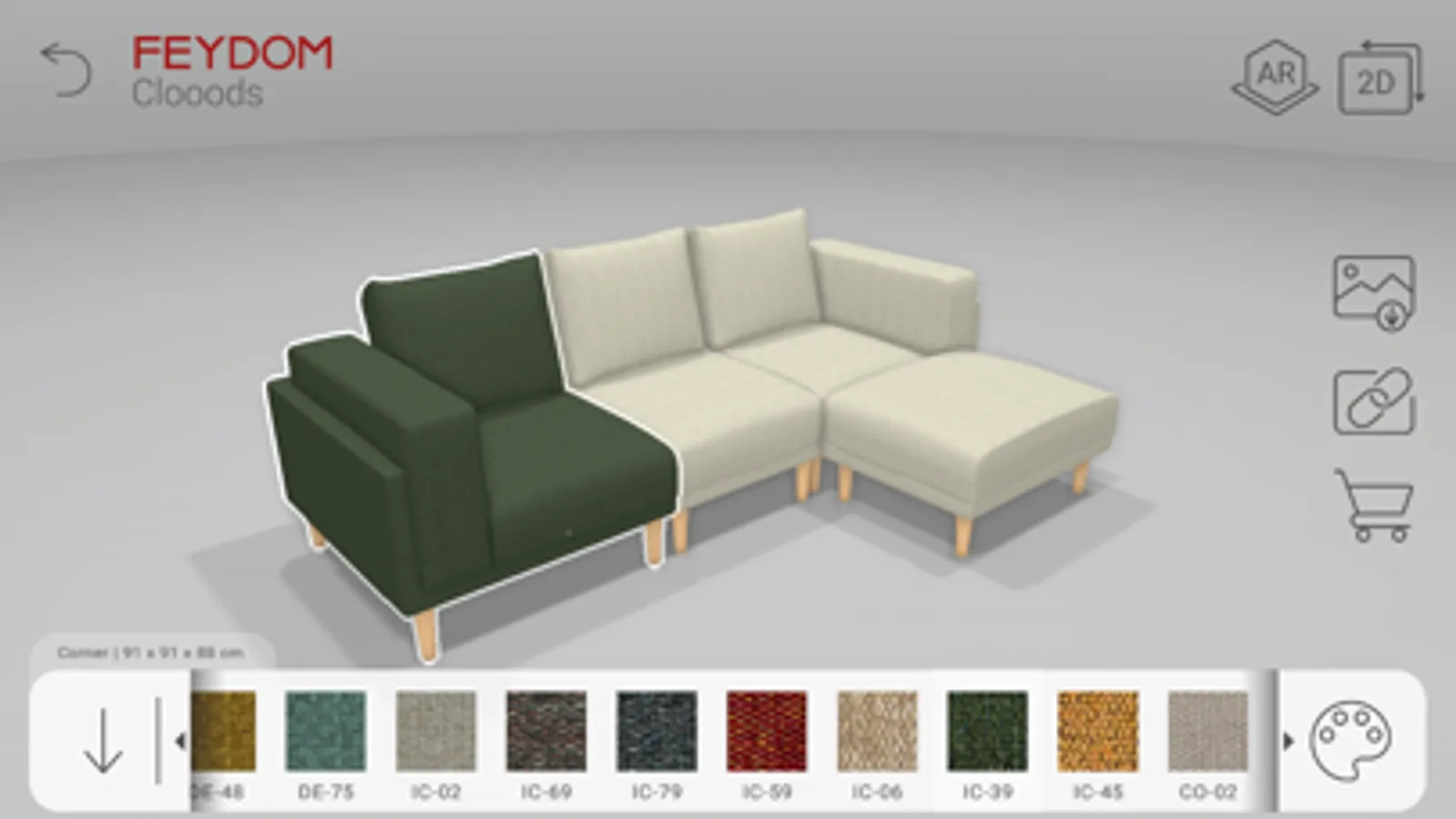 By selecting AR mode, you can see how the sofa look inside your room. Move, rotate, change fabric or take a screenshot, all while in AR mode.