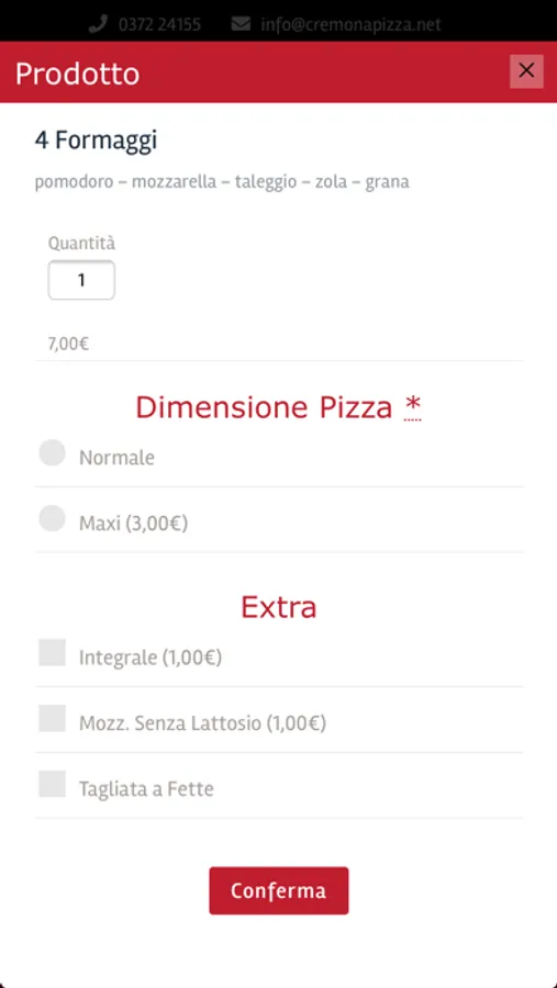 Questa app ti permetterà di creare i tuoi ordini e scegliere se riceverli direttamente a casa o passare a ritirarli nel punto vendita Pizza Net in Piazza della Pace a Cremona.