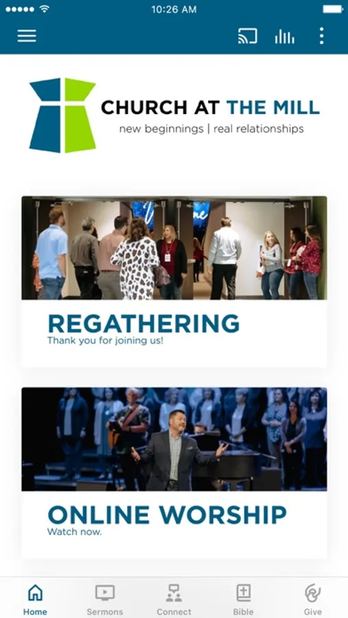 The Church at The Mill app provides easy access to the latest sermon series, livestream services, event information, and ways to get connected.