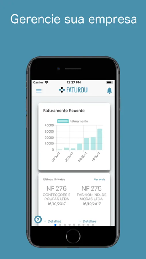 Além disso você pode contratar a emissão de Nota Fiscal Eletrônica pelo próprio aplicativo. Assim você tem a gestão completa do seu negócio.