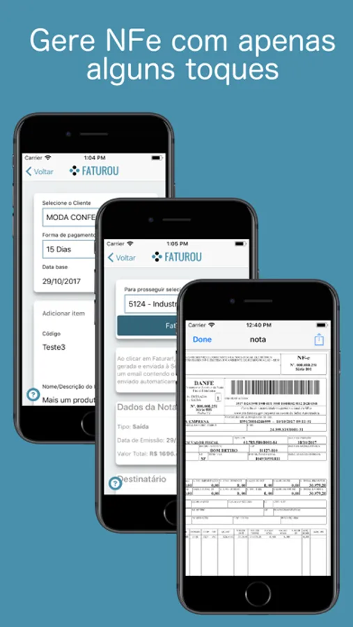 - Emita notas fiscais de faturamento digitando apenas os dados importantes do produto ou serviço como Nome, quantidade e valor. O Faturou APP resolve o resto para você.