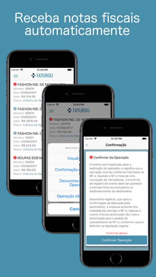 - Visualize, confirme ou recuse notas emitidas contra seu CNPJ com a manifestação eletrônica. O carregamento das notas é automático.
