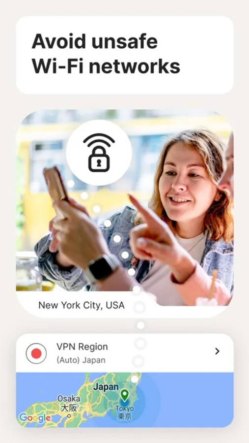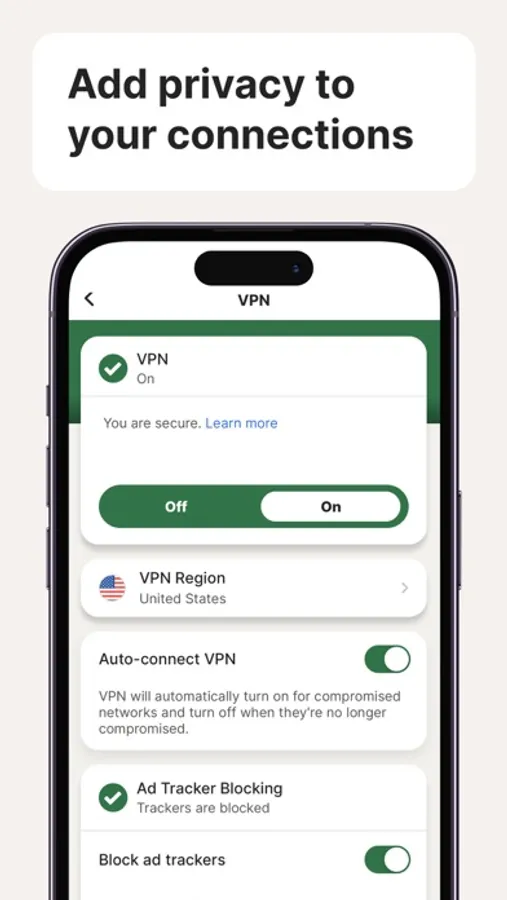 Our VPN helps block cybercriminals from accessing personal information sent and received when you connect to your home and public Wi-Fi.[1]
